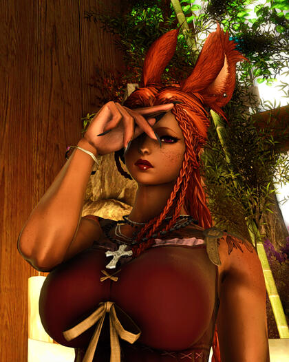 1. Lysari is a noted freelance mercenary known to all three of the Grand Companies. Do you have a job or quest that needs done? An escort or a pesky monster slain? Skip the registration and fees and speak to her directly, she's hard to miss.2. Does the Rava look familiar to you? She does stick out. Are you Ravan and raised in Golmore? Maybe you know of her? Has she worked for you before? Are you that drunken one night stand you both regret? Did you meet on the road and share a campsite? (Let us chat and find out.)3. Perhaps it's her striking features that have caught your eye. Either the pure vanity or her fierce but tempered presence. Occasional glances her way or the bold stare from the across the way. Perhaps she has also noticed you.4. It's not hard to notice the vials of dubious liquid she sometimes keeps around her belt or the various herbs and flora sticking out of the rugged rucksack she carries occasionally. Is she a potion maker or Alchemist?
